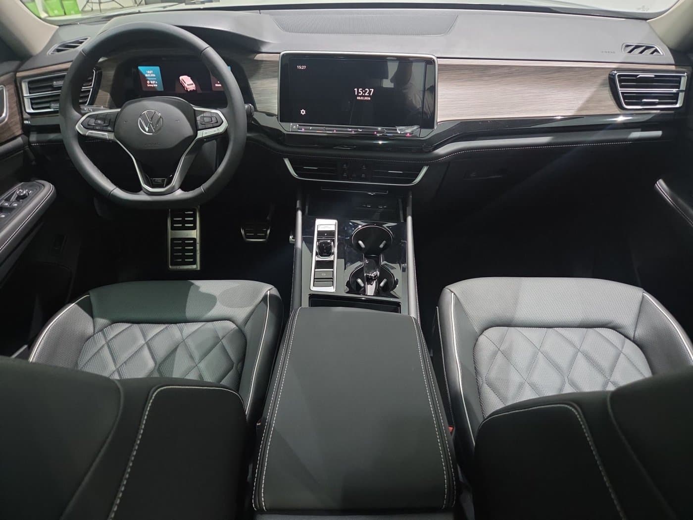 - – R-Line leather multi-function sport steering wheel with touch control, heating, hands-on detection, and paddle shifting