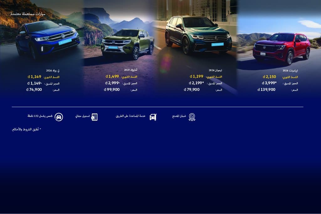 امتلك فولكس واجن ابتداءً من 999 درهم شهريًا واحصل على وقود مجاني لمدة 6 أشهر.